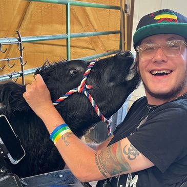 Carson has a cow, named Enzo, on the ranch and is combining his love for his cow and disability advocacy in his blog.